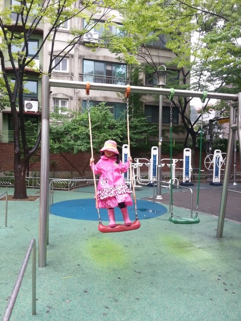 놀이터에 아무도 없어서 혼자 그네를 독차지 하니 너무 좋다네요 ㅋㅋㅋ