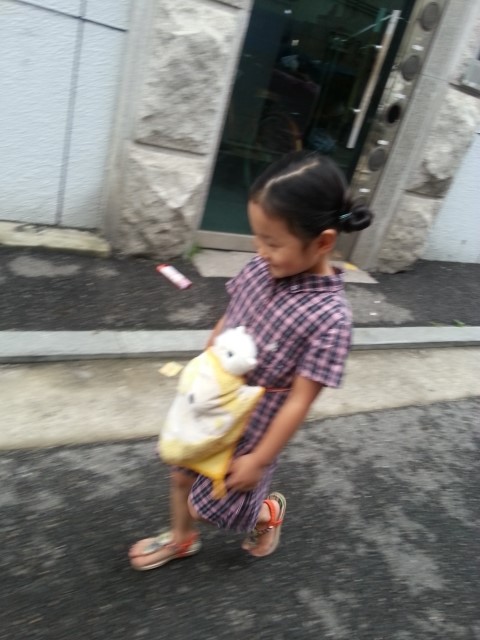 고양이 인형을 데리고 가야겠다면서 야무지게 포대기하고 나왔어요 ㅎㅎ